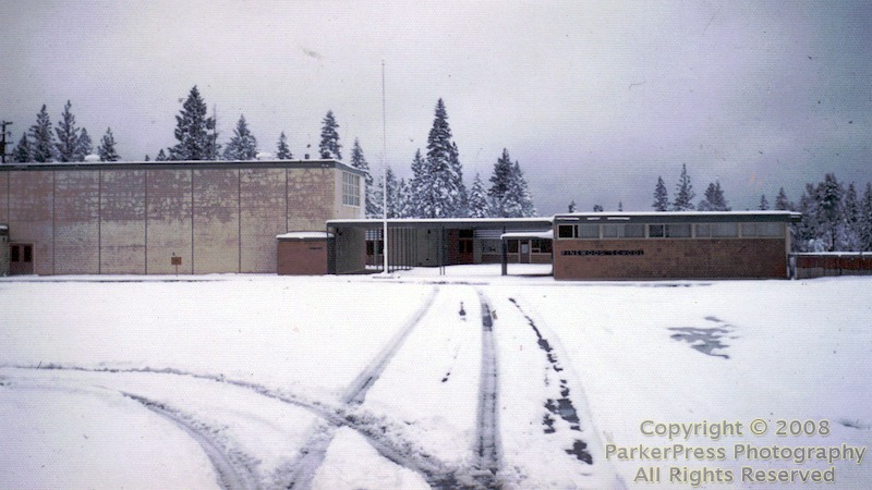 A new school site on Pine Street was purchased and leveled in 1958 and construction began on Pinewood School’s multi-purpose room and two classrooms. Trailers were brought to the site to be used as classrooms. In 1960 Hans “Toni” Mayr was hired as the Superintendent of the growing, overcrowded school. He began a hiring campaign and the 1960-1961 school year was begun utilizing an overlapping schedule in the first through the fourth grades. This allowed double use of every classroom at Pollock Pines School. Half of the classes came in the early morning, leaving for lunch prior to noon. The other half came as the morning classes left for lunch, and occupied the classrooms until the morning classes returned from lunch. The afternoon classes then went to lunch. When the afternoon classes had finished their lunch period, the morning classes were dismissed to go home. This left the classrooms for the afternoon classes to use for the remainder of the day. This overlapping schedule was in effect until after Christmas when the rest of the classrooms at Pinewood School had been completed. Vern Whalen taught 51 eighth grade students that year in a small trailer. Ron Parker taught 45 fifth grade students in a trailer of the same size. Two portable classrooms were also used to house the large number of students. The enrollment had already outgrown the new school. The stage, office and kitchen were later added to Pinewood School.
