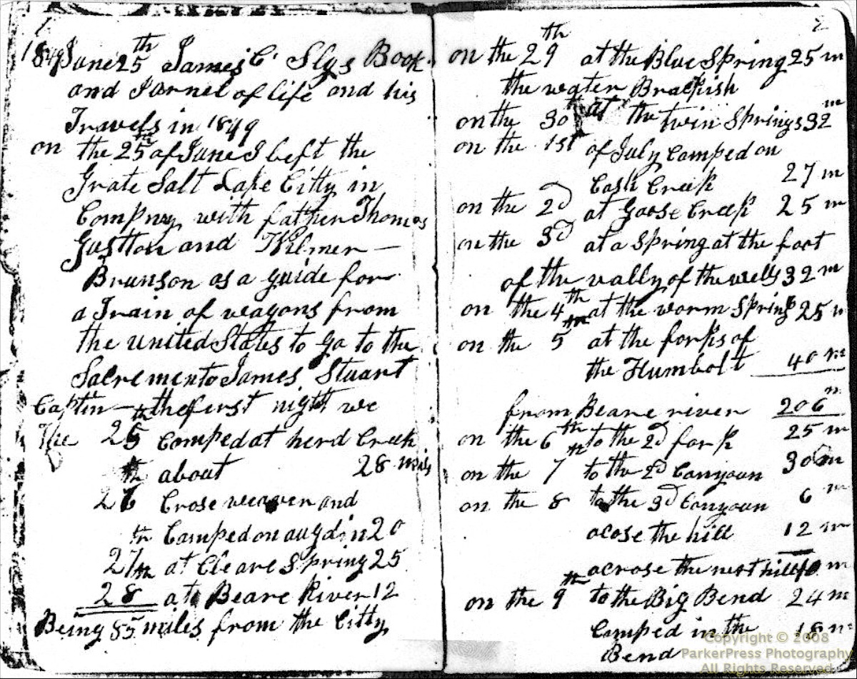 - James Calvin Sly 1849 Diary – Page 1-2