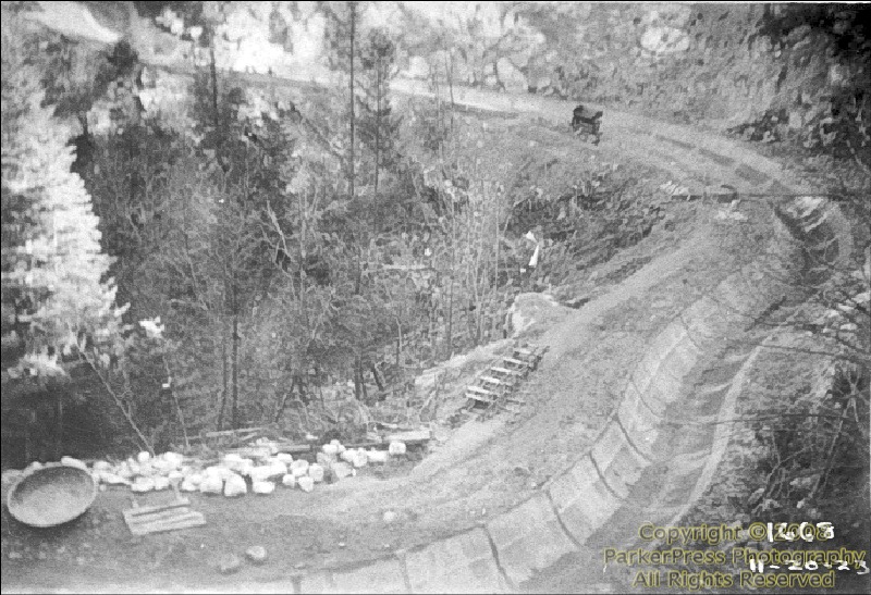 Men were hired to walk the ditch looking for and repairing leaks. Mr. Dunkum was responsible for the section between Camp 2 and Camp 5. Camp 2 was located where the present PG&E camp is now located just east of Bullion Bend. (The numbers of the ditch camps have been reversed since early times). The Dunkums lived in a house there below the ditch from 1891 until they moved to Placerville in 1901. Janice Chappell’s grandmother, Buelah Dunkum, was born at Ditch Camp # 2 in 1898. The children walked the 3 miles to the Cedar Grove School. Their closest neighbors were the Butlers, west of Randolph Canyon. They borrowed the Butler’s wagon twice a year to go into Placerville for supplies. The wood shed was built over the ditch, so that wood cut east of the house could be floated down, pulled out, and stacked inside the shed. The Camp 2 house was later moved to a site above the ditch.